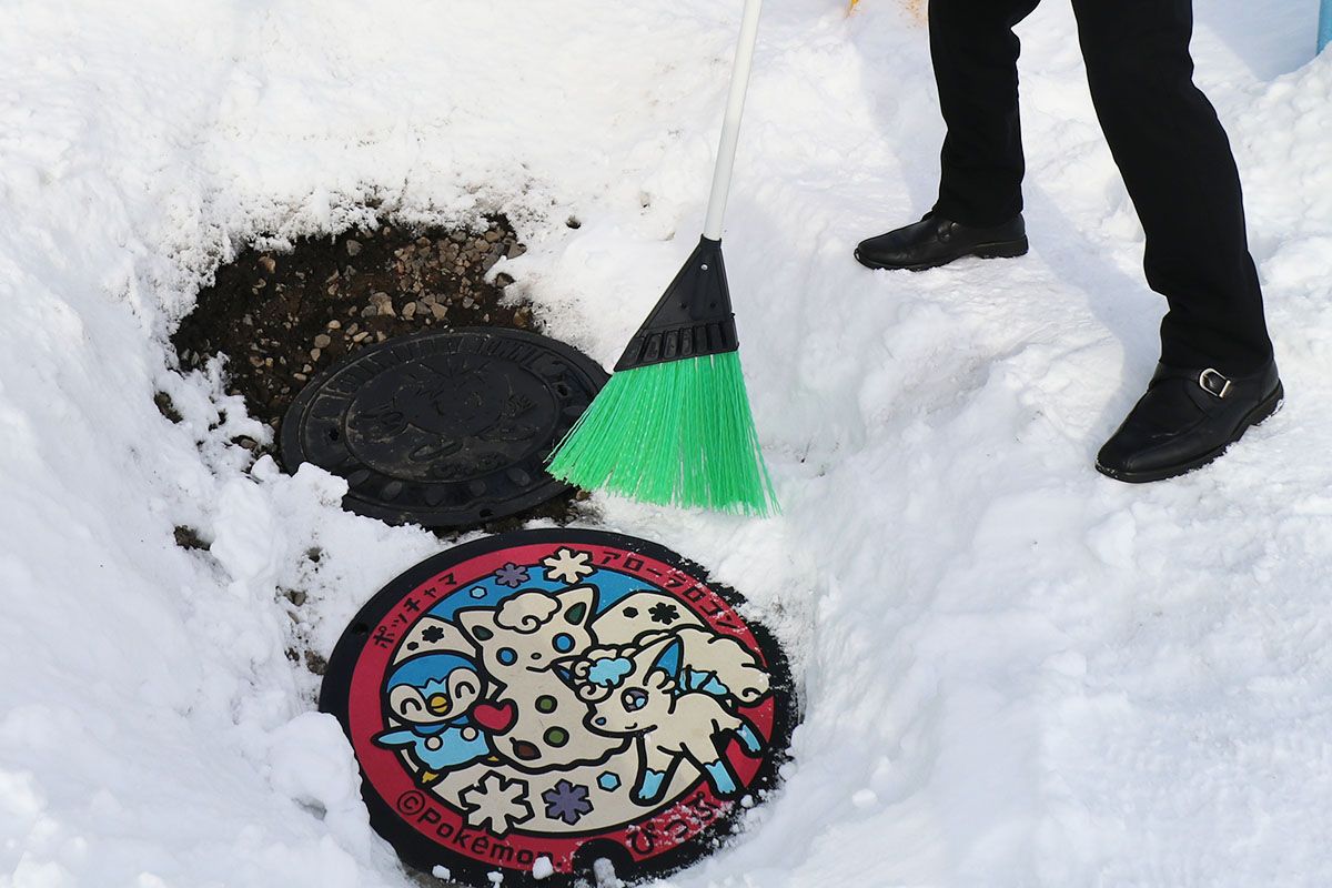 「寶可夢人孔蓋」在北海道也有亮眼表現。例如在有「滑雪與草莓之鄉」的美名、又以「最能將北海道大雪山的美景盡收眼底」而聞名的比布町,就可見一斑。在這個北海道米的顛峰傑作「夢美人米(ゆめぴりか)」誕生的故鄉,也設置了寶可夢人孔蓋。當地的居民們可謂是對寶可夢人孔蓋關愛有加,為了不讓精心繪製的人孔蓋被冰雪掩蓋,他們會為其搭起帳篷,或是設置寫著「寶可夢有時候會藏在冰雪底下,若碰上這種情況,請用雪鏟和掃帚輕輕翻找出來,再『收服』牠吧!」的告示牌。當地的寶可夢人孔蓋還因此被網友戲稱為「全日本最被溺愛」的人孔蓋,在社群網路上蔚為話題,吸引許多遊客慕名前來親睹其風采。